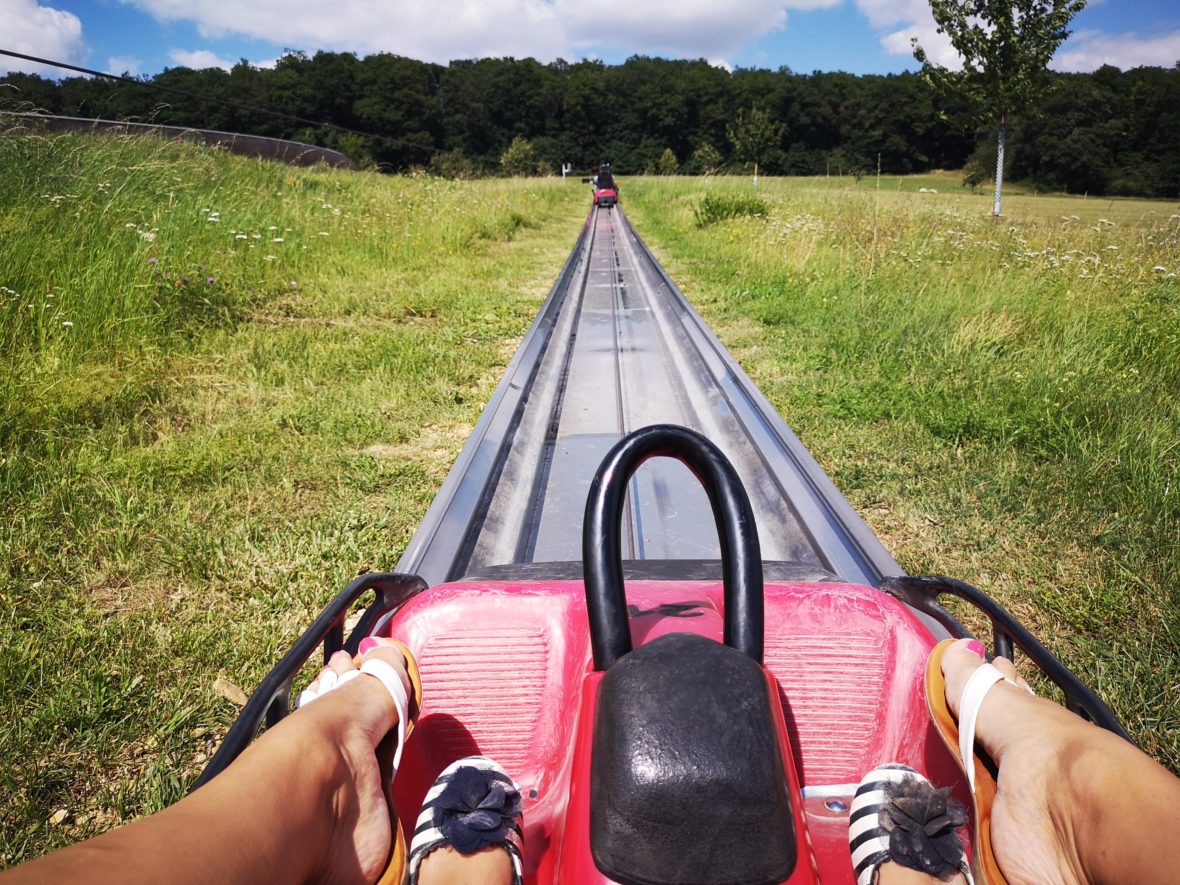 De afdaling van 700 meter duurt ongeveer 2 minuten, en je kunt snelheden tot 40 km/u bereiken. Je kunt zelf remmen en versnellen. Je kunt zelf remmen en versnellen en naar eigen gevoel over de bochtige baan naar beneden suizen.